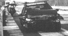 une BX bloquée en travers de l'autoroute.