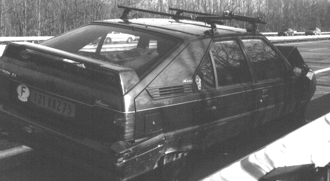 une BX bloquée en travers de l'autoroute.